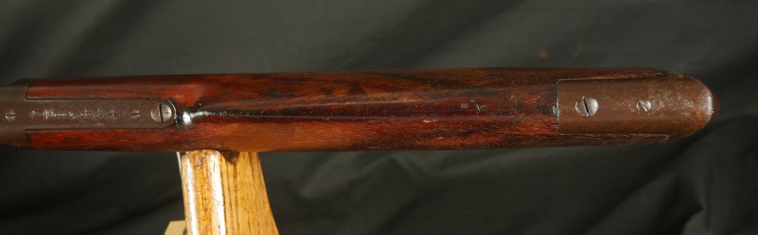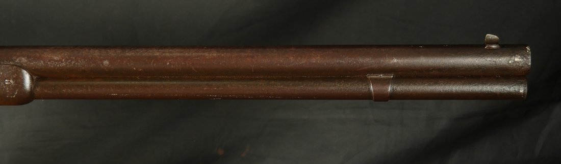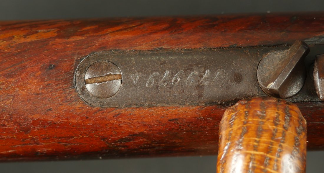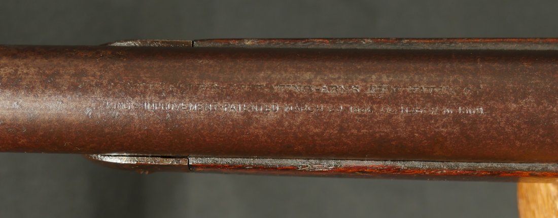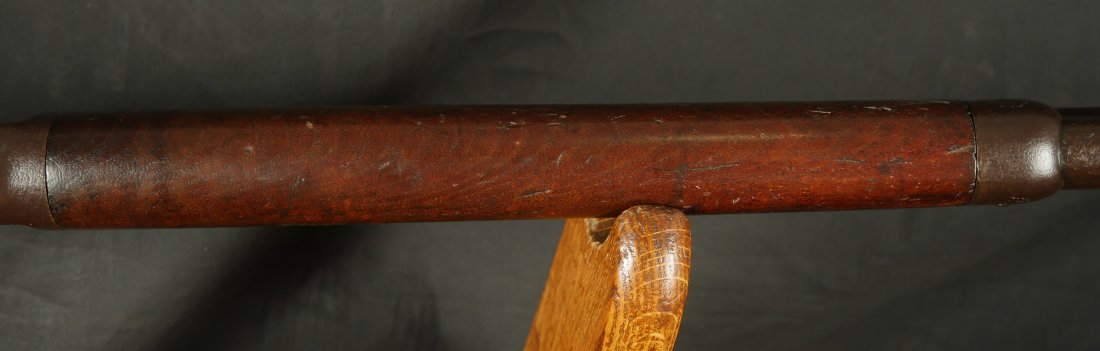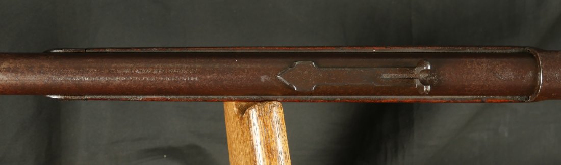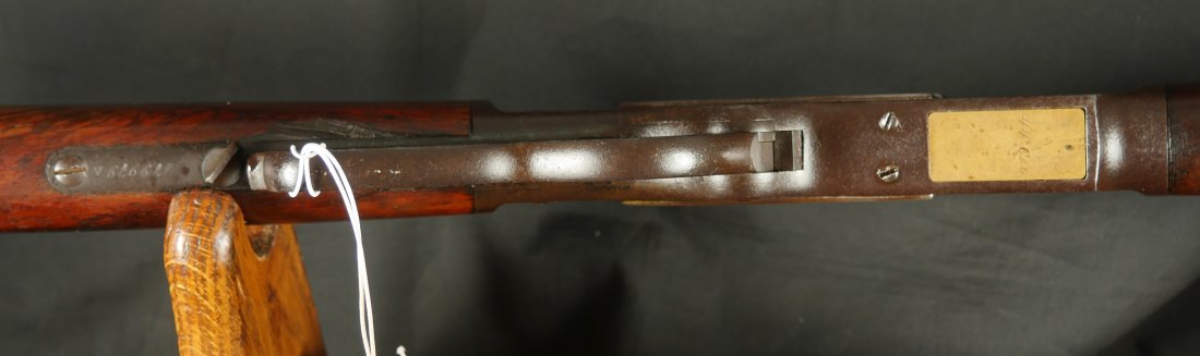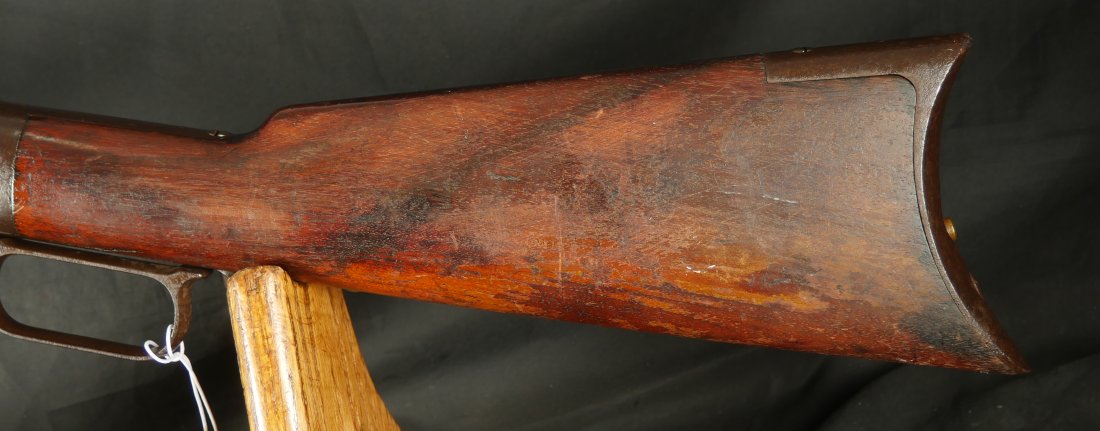 079-0126-9380, Winchester M-1873 3rd Round Barrel Rifle in 44-40, #179xxx made in 1885. With dark overall chocolate patina with spots of fine surface residue scattered about the metal parts. Fine wood to metal fit, clear markings, functional mechanics. The bore shows strong rifling with shallow scattered spots the entire length of the bore. The bore is shootable.