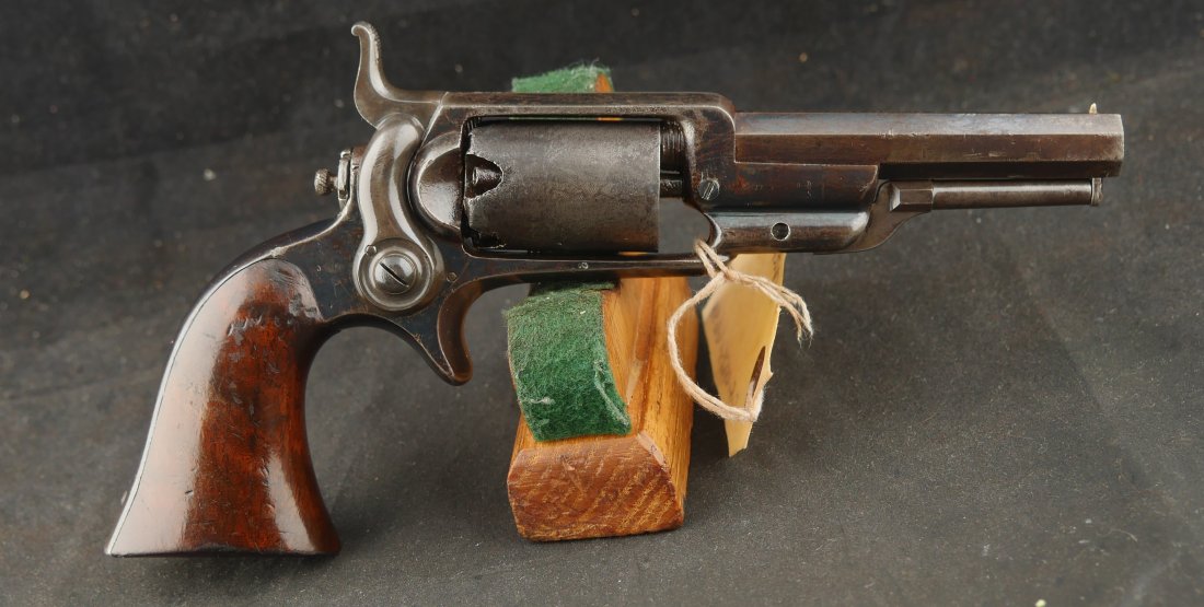 079-0221-2915, Remington-Smoot New Model No. 2 Revolver with Box. Excellent plus condition .32 RF, 5 shot with fine checking on hard rubber grip. Almost no scratches and use marks on pistol. Excellent plus overall.
