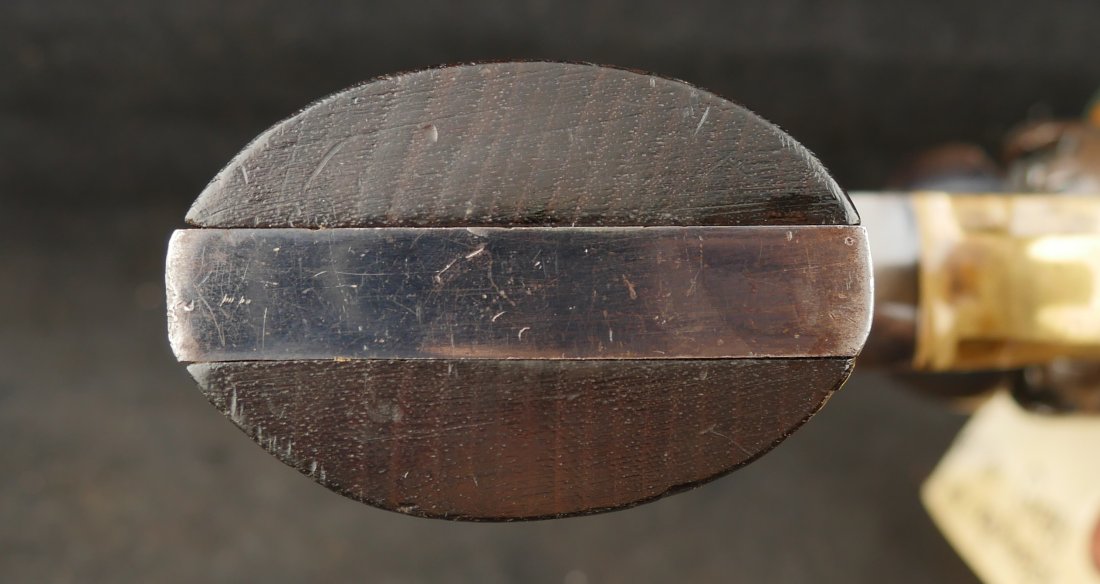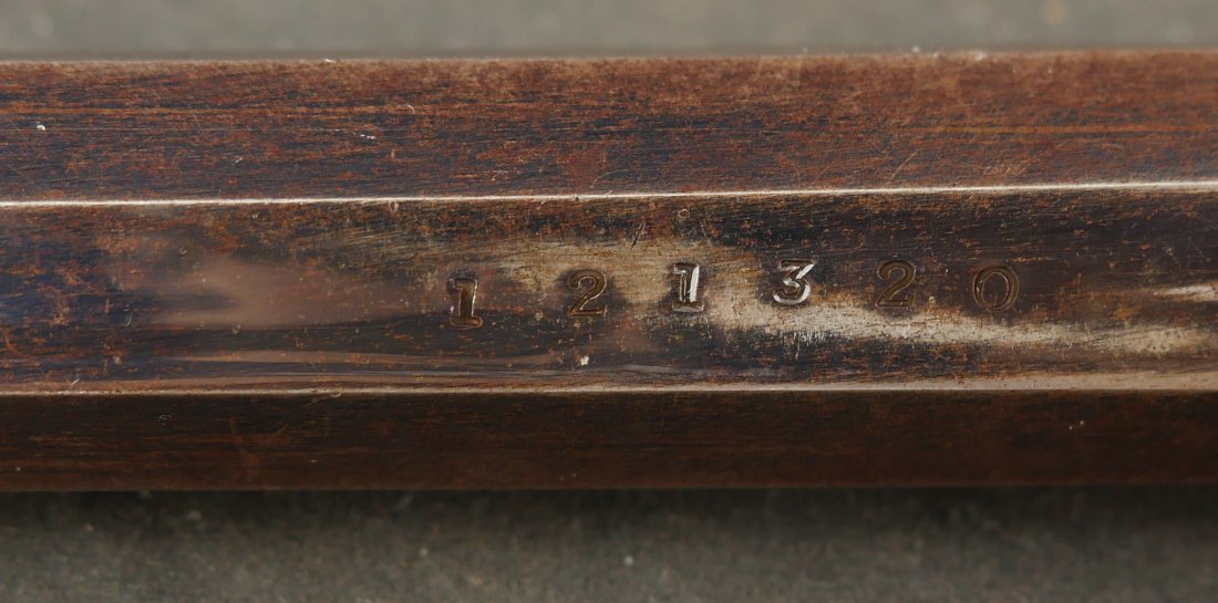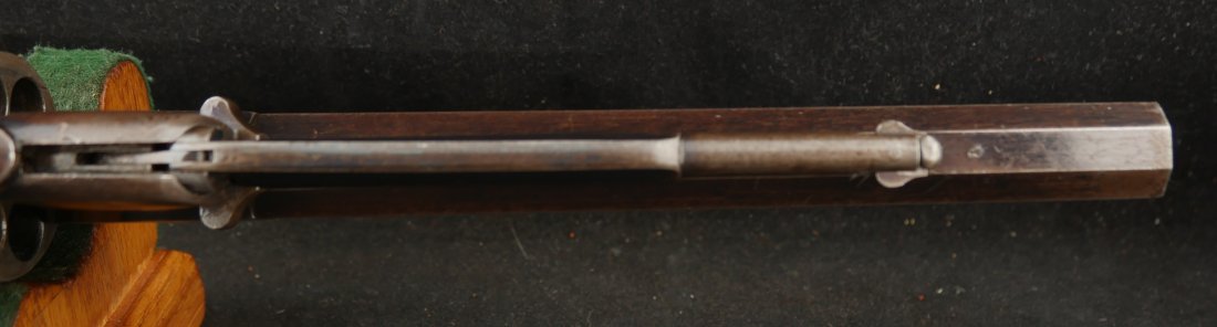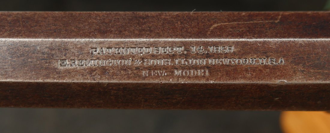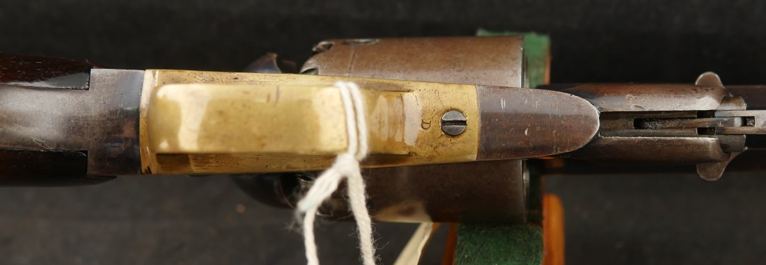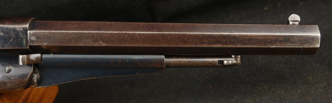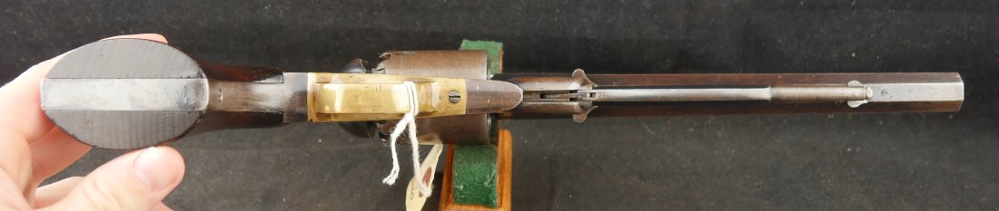 079-0326-9431, Reminton NM Army, .44, 6 shot. Overall 70% deep to medium blue on barrel, frame, cylinder and the lever. The grips show light use marks with what might be trace of a cartouche. The markings are crisp, the action is tight and functional. The bore is mirror bright and crisply rifled. The grips are slightly ill fit, but I think it is from the gun being dropped and backstrap slightly bent. Fine to excellent overall with excellent bore. #121xxx