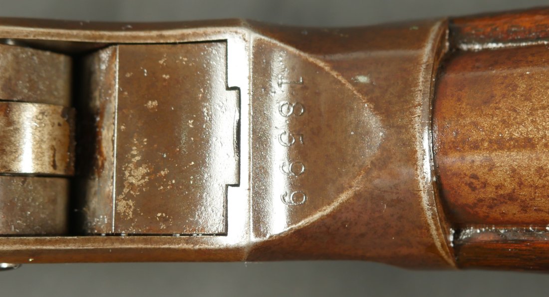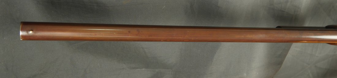 079-0326-9447, Winchester M-1887 12 Gauge Shotgun with smooth brown patina and strong flashes of blue in protected places on the barrel. Very light overall handling marks to metal and wood. IT has a 30 inch barrel. Fine residue the length of the bore. Clear markings with #18xxx made in 1888. Very good plus overall. Much better than average. Functional action.