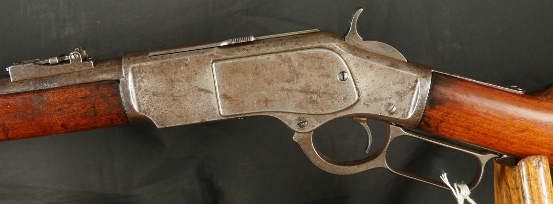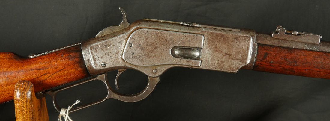 079-0825-D0255, Winchester M-1876 Round Barrel Rifle in 45-75 in rare Open Top frame construction. BUY NOW