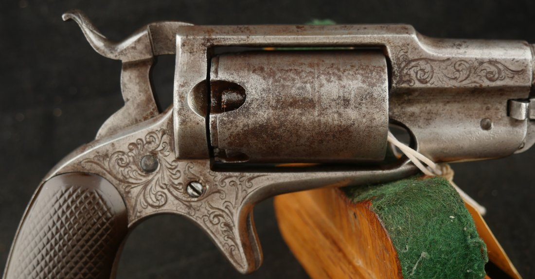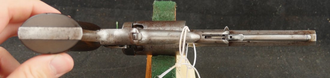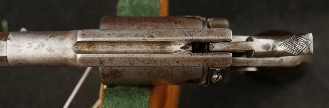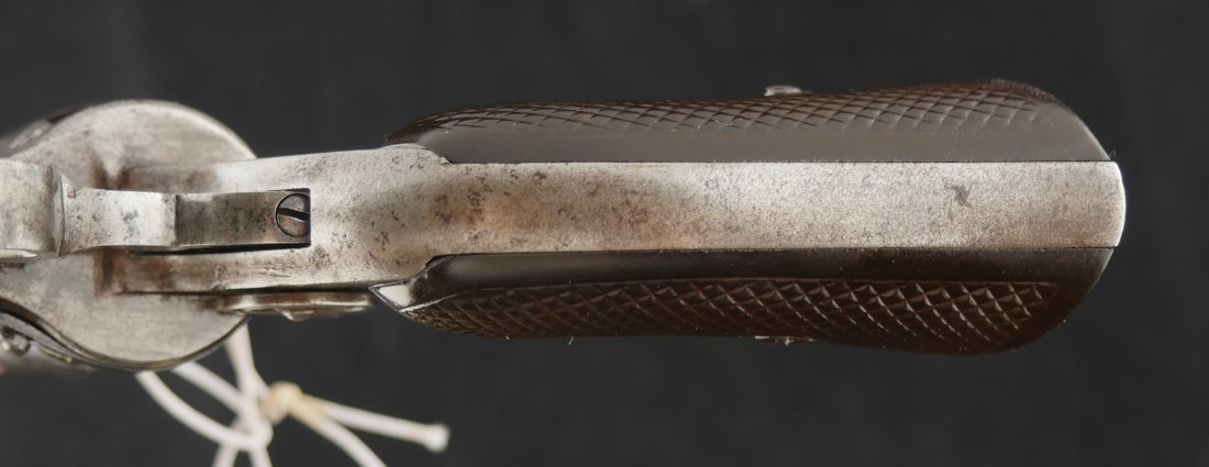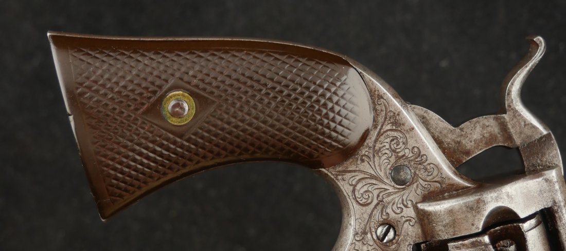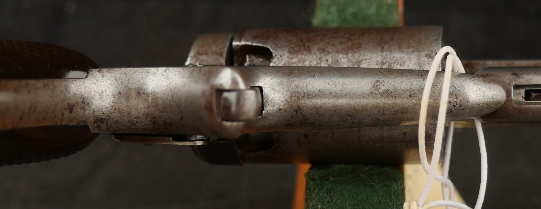 079-0126-9389, Remington Beals 3rd Model, .31 cal, 5 shot, factory engraved with 70% visible etched cylinder scene. The action is functional with fine residue in the bore. The markings are clear, the grips are checkered with a few minor dings. The remainder of the gun shows scattered bumps and dings. Very good overall, only 1000 were made from 1857-1860.