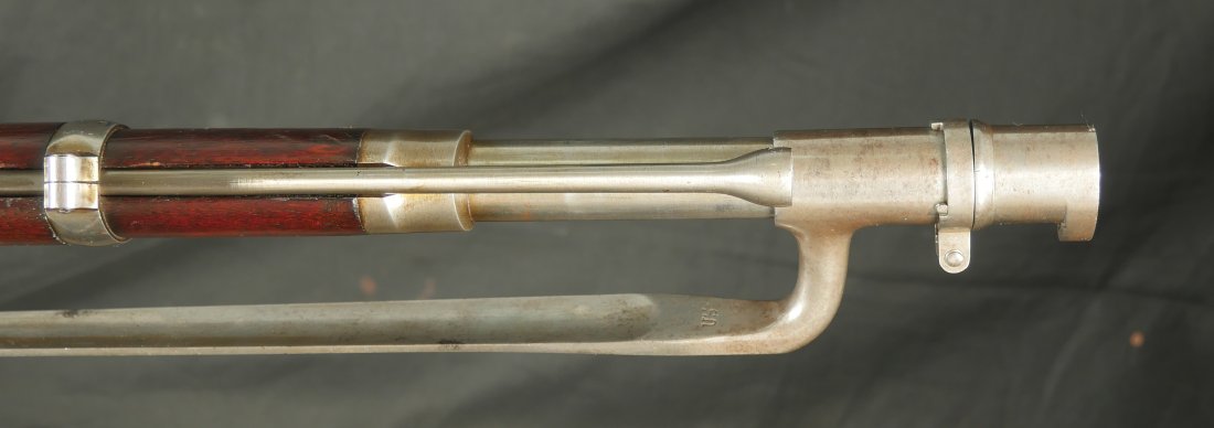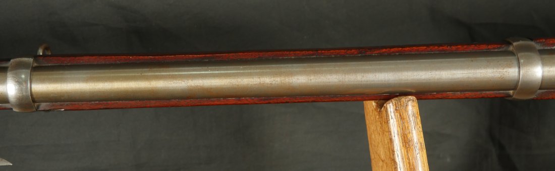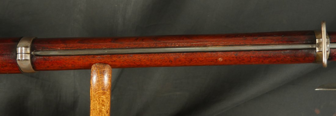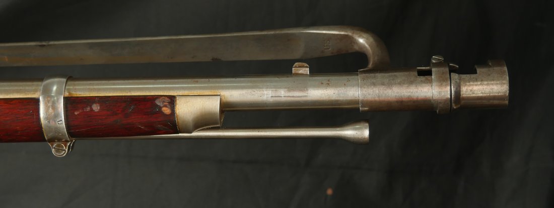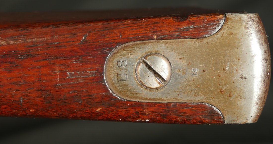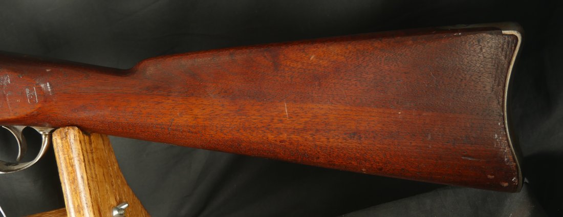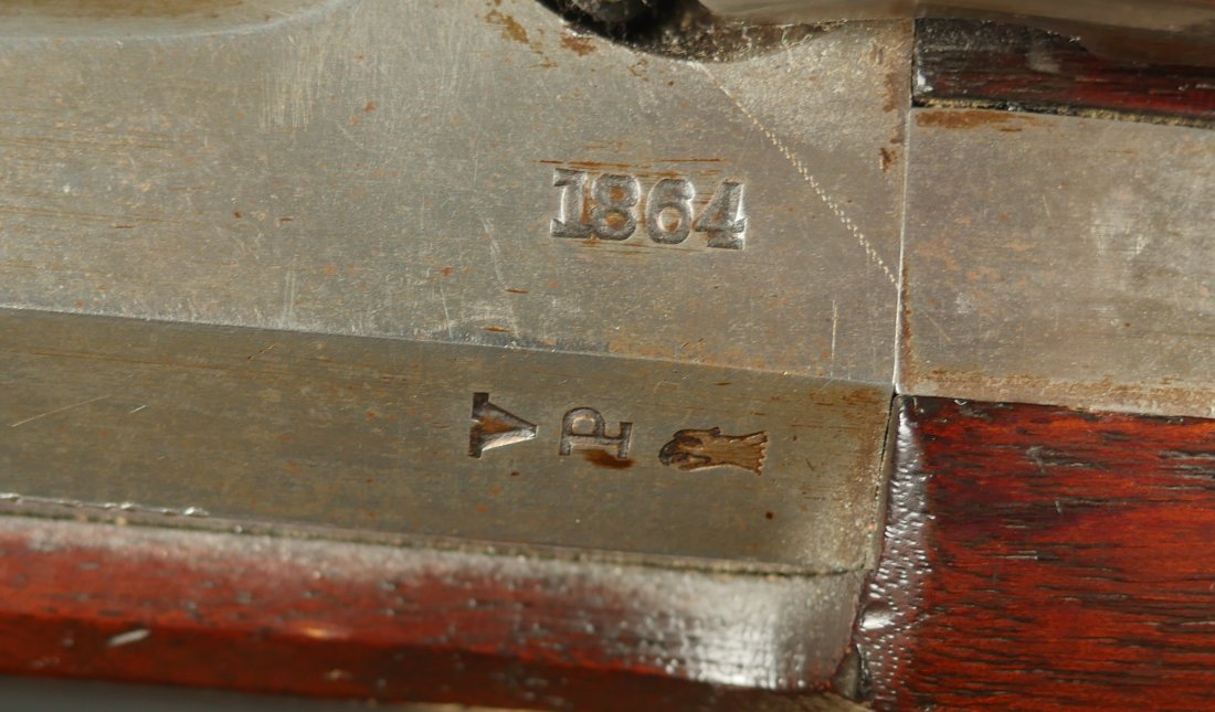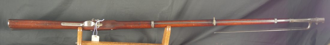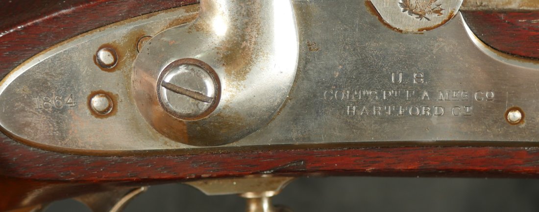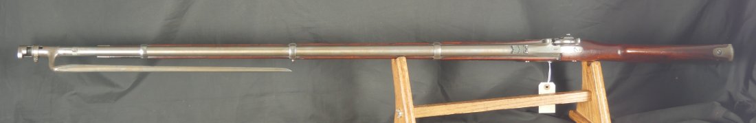 GR-0226-6840, Colt Model 1863 Military Percussion Rifle in .58 caliber in unissued condition. Crisp wood edges, 2 vivid cartouches, showing light scattered use marks, probably mostly from gun shows. 1864 date on the lock and on the upper tang. The barrel and lock are bright and crisply marked. Crisp tight hammer fall. A few scattered light scratches and bumps on the barrel. Bright excellent bore. It comes with an original bayonet. Excellent overall.