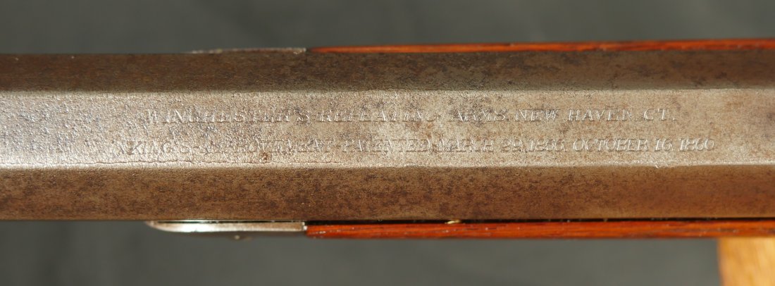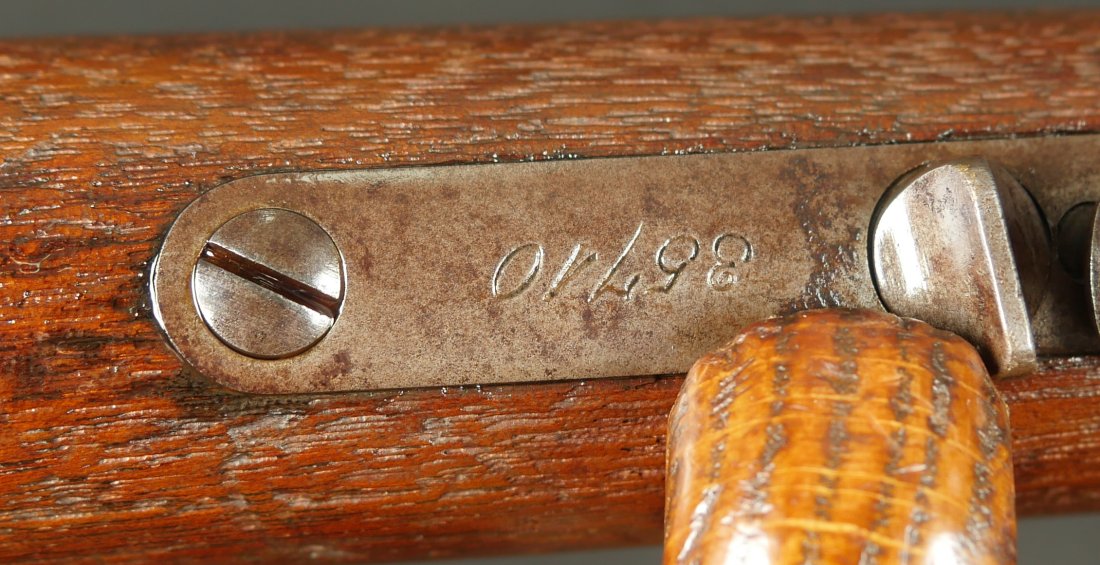 GR-0326-6857, Winchester Model 1873 2nd Model with thumb print dust cover. Special order 28 inch overlength. BUY NOW