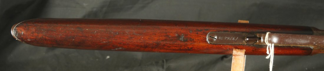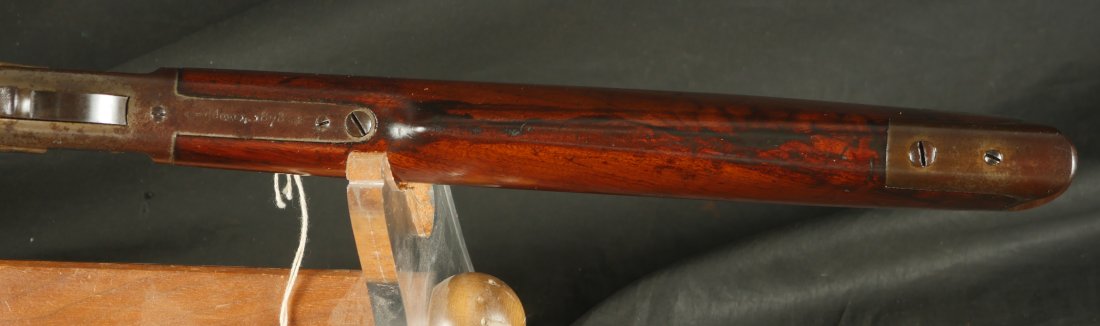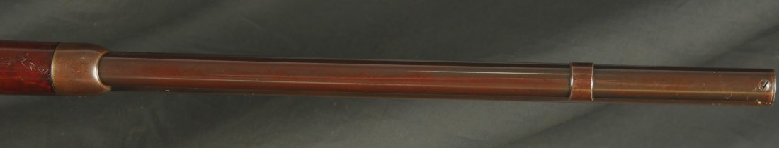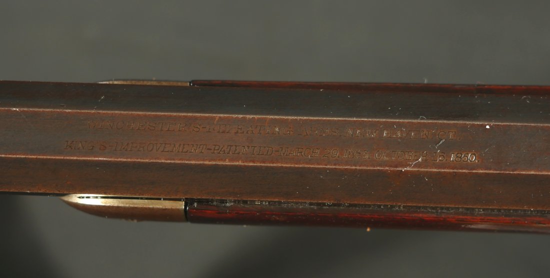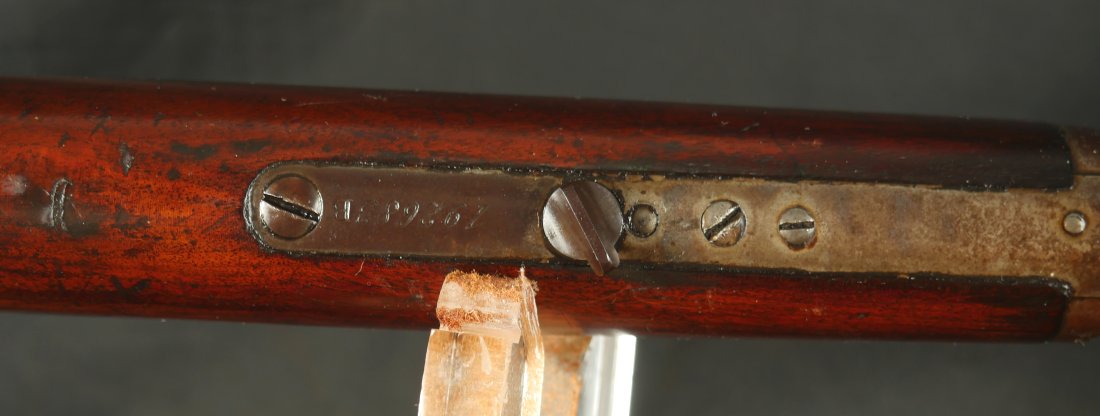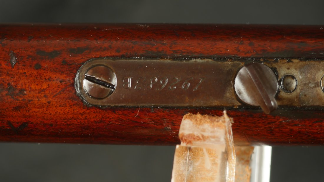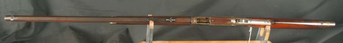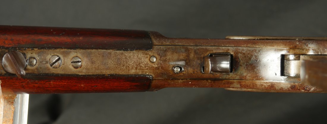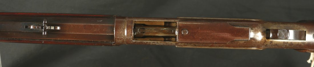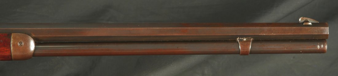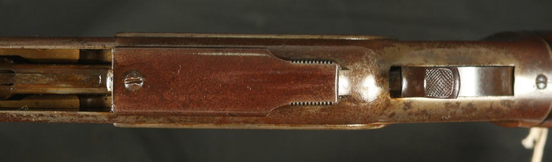 GR-0326-6872, Special Order Case Hardened Winchester Model 1873. Case Colored frame. .38 WCF. 24 Inch barrel. Serial number 192,xxx, gun was made in 1885. The barrel retains about 60% of the original blue mixing to an even brown patina. There are light bumps and dings to the stock, The wood shows honest use and normal wear Marks. The gun did not just sit in a closet, it was carried and used. The wood to metal fit is excellent. The case colored frame shows strong traces of original case color, if I had to put a percentage to it I would say about 5%-10% bright case colors, the remainder has turned mottled brown. The initials JRA has been applied into the right side of the forearm stock. The mechanics are functional. The bore is bright, shiny and crisply rifled with only a few tiny spots in the bore.. Fine ++ bore. The gun was used but cared for. Any case hardened 1873 is hard to find and this gun is in very nice and honest condition. Fine overall condition.