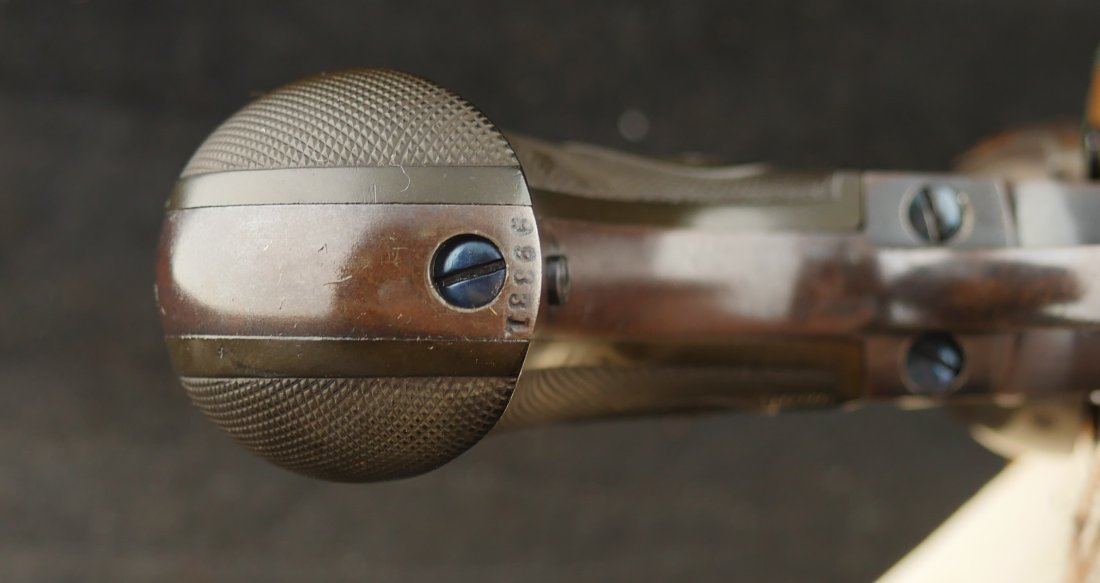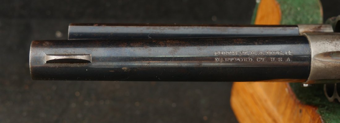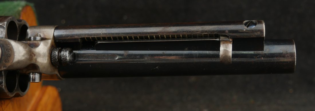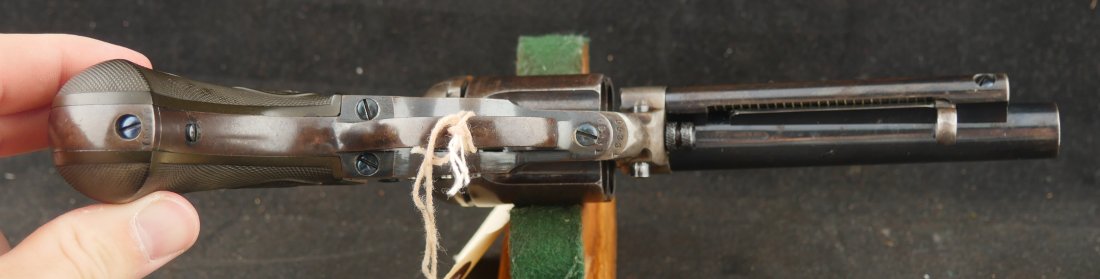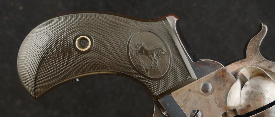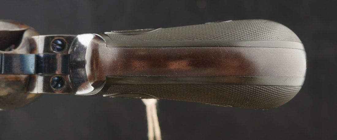GR-0925-6675, Colt Model 1877 Lighting Revolver. .38 cal. 85% original blue finish. 75% original bright case color. Untouched screw heads with nire blue. Excellent bore. Crisp tight mechanics in both DA and SA. Comes with a Colt letter, and letters the gun to Meachum in St. Louis in 1894.