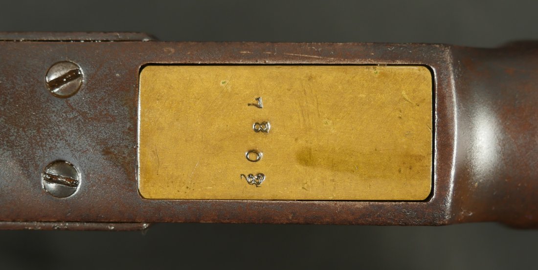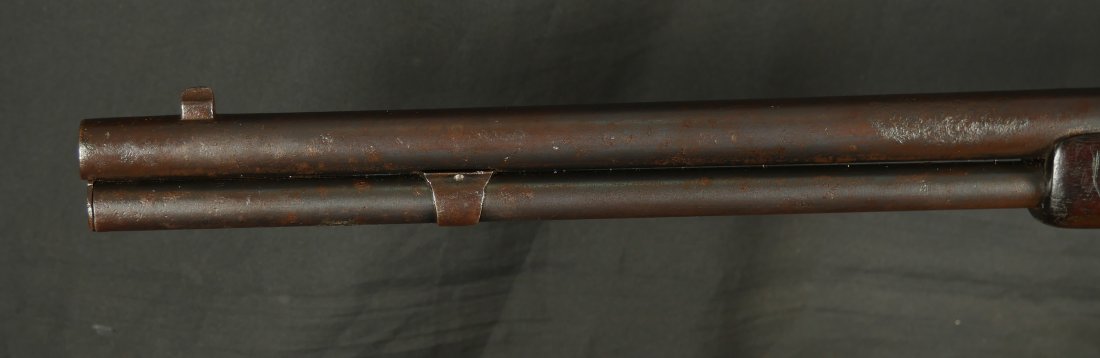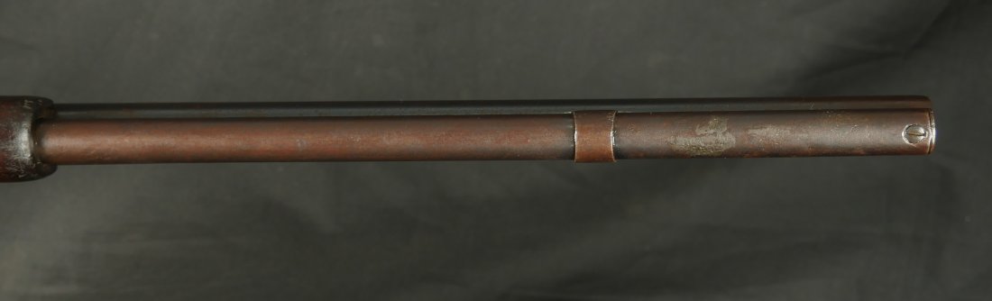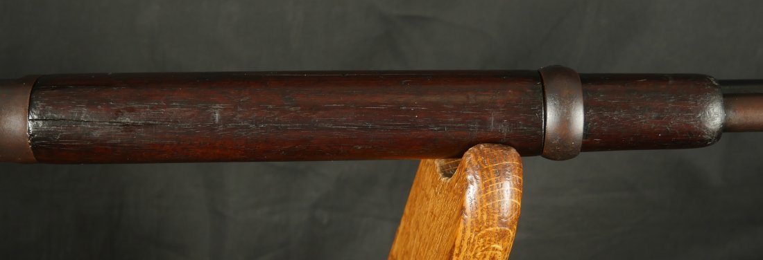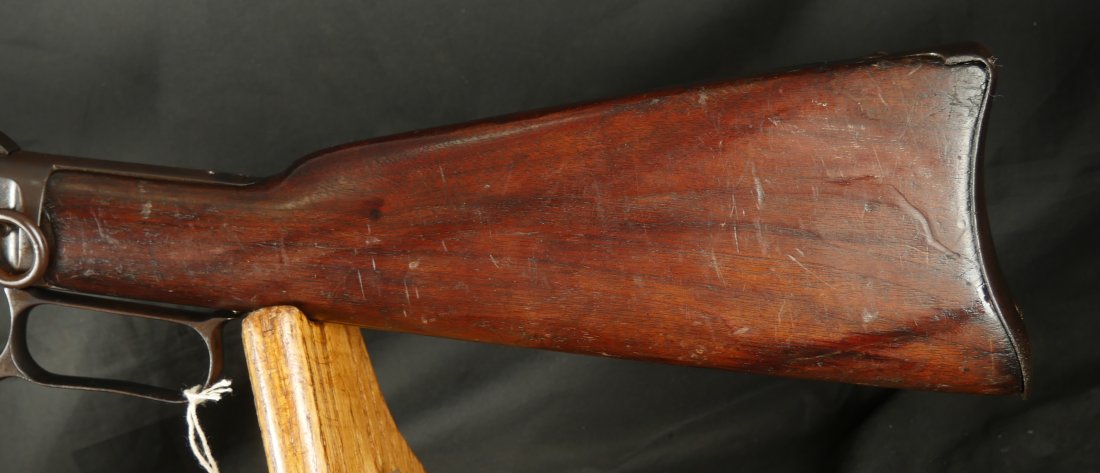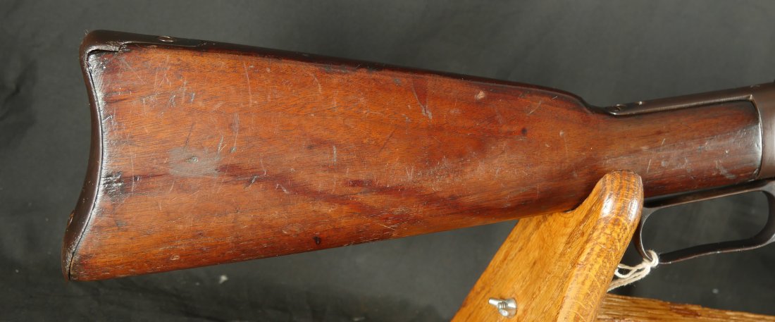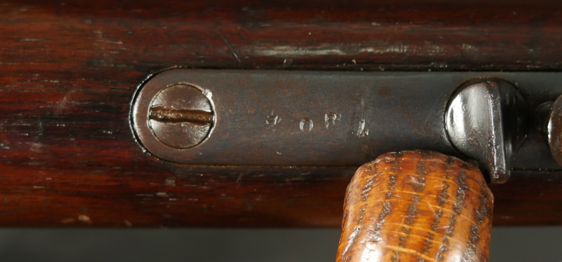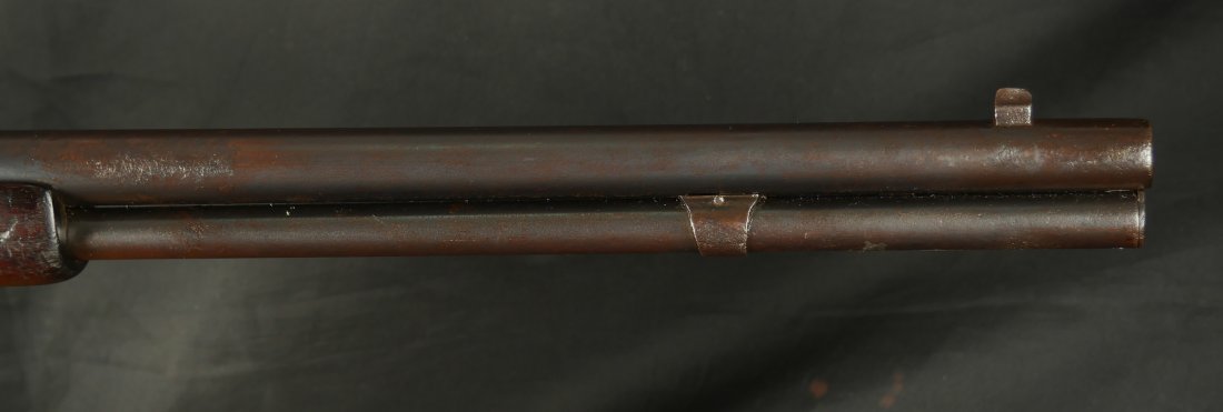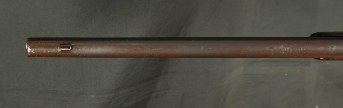 GR0126-6811, Winchester Model 1873 Saddle Ring Carbine. .32 cal. Serial number is restamped. The dust cover is stuck. The bore is bright, mostly shiny with strong rifling, a couple patches of pinprick like pits and some residue in the bore.