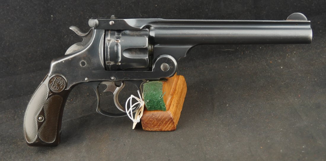 GR79-0621-5141, Colt Model 1849 Pocket. 5 shot. 6 inch barrel. Serial number 322,xxx. All the numbers on the bottom of the gun match as well as the cylinder. There is no number on the wedge. 85%-cylinder scene. Made in 1870. 10% blue on the barrel. Flashes of case color on the frame and lever. Fine condition grips with about 80% original varnish. Grips show honest use marks.