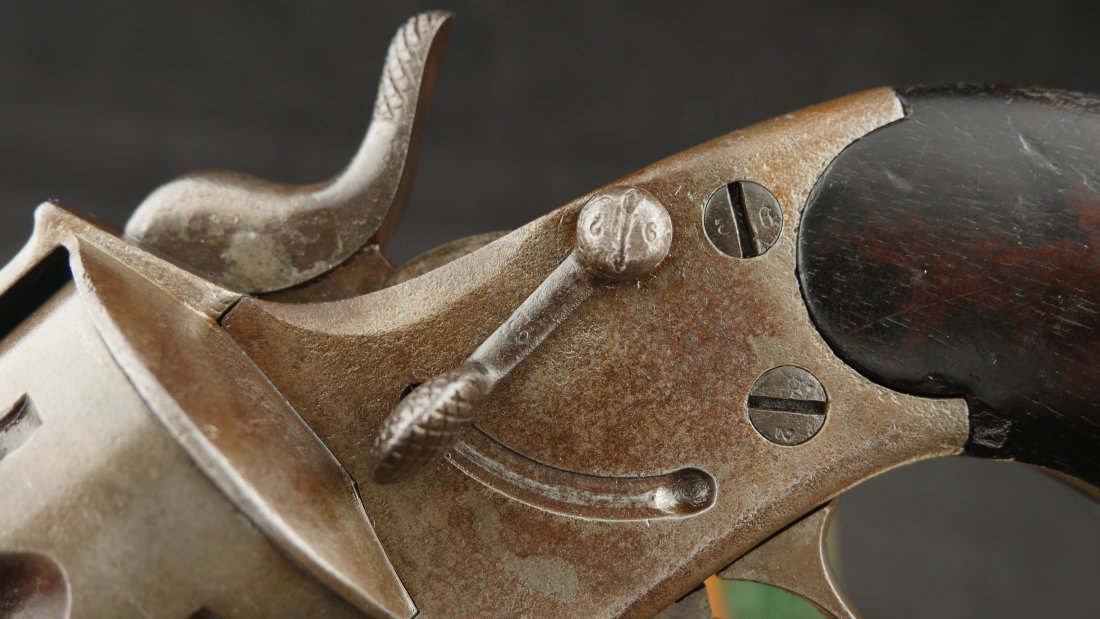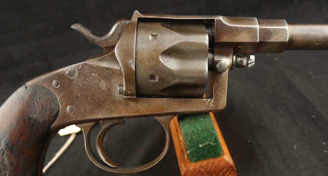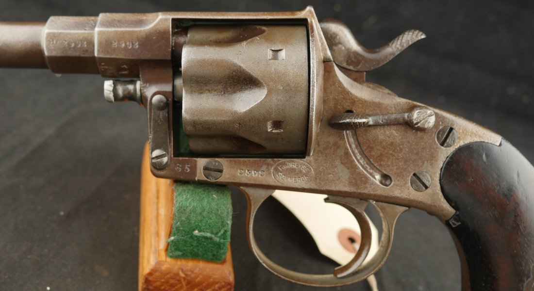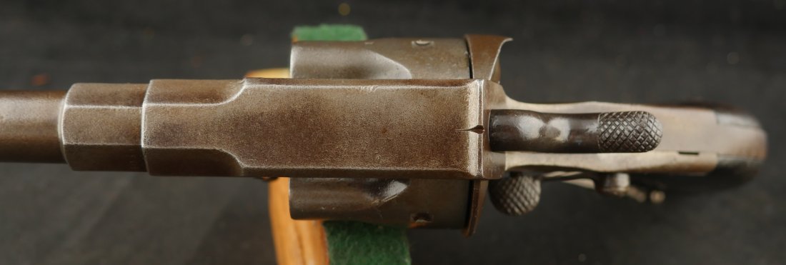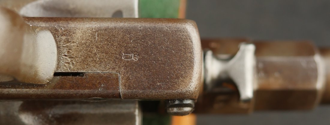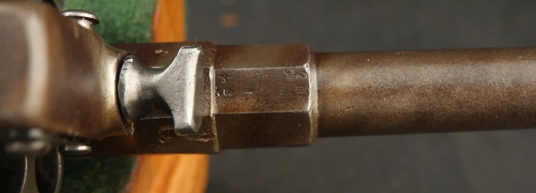 GR79-0823-4850, German Reich Military Revolver. 4 1/2 inch barrel. Serial #25xx, I see a bunch of numbers all over the gun and they all match. There is a unit mark or rack mark just in front of the the lanyard ring. The frame is mottled brown with scattered very fine pinpricks. Crisp tight mechanics. The bore is bright, shiny and crisply rifled. Fine bore. These are the predecessor to the German Lugar Military Pistol. Very good overall.